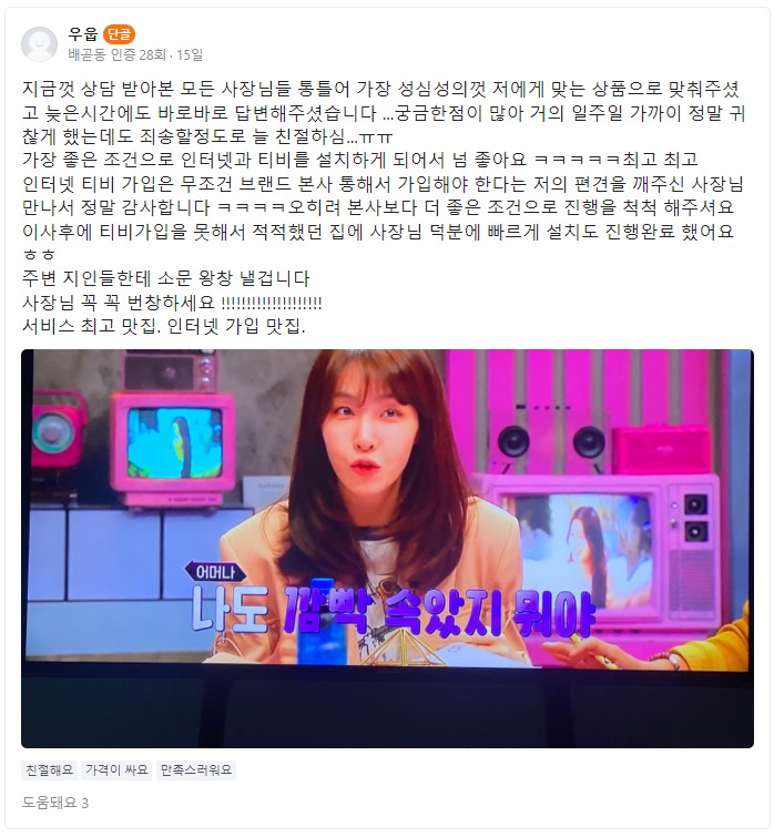 목록 글쓰기 생생! 다주다 실후기 모음 페이지 정보 작성자 다주다네트웍스 댓글 0건 조회 310회 작성일 23.05.26 본문 더욱 발전하는 다주다네트웍스가 되겠습니다!감사합니다 ^ㅡ^ 이전글 생생! 다주다 실후기 모음 23.05.27 목록 다음글 생생! 다주다 실후기 모음 23.05.26 댓글 0 댓글목록 등록된 댓글이 없습니다.